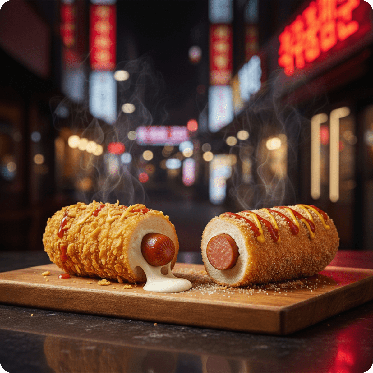 🌭 Normal Hot Dog ise sadece sosis dolgusu ile klasik Kore sokak lezzetini sevenler için idealdir.