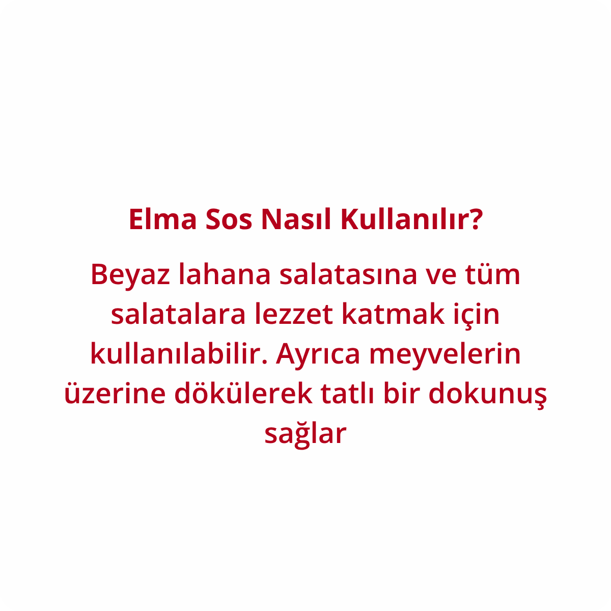 Elma Sos, salatalarınıza canlılık, renk ve tat katar. Hafif dokusu sayesinde hem sebzelerin doğallığını korur hem de yemeğe ferah bir aroma kazandırır. Sofralarınıza Kore esintisi taşımanın en kolay ve pratik yollarından biridir. 🌸